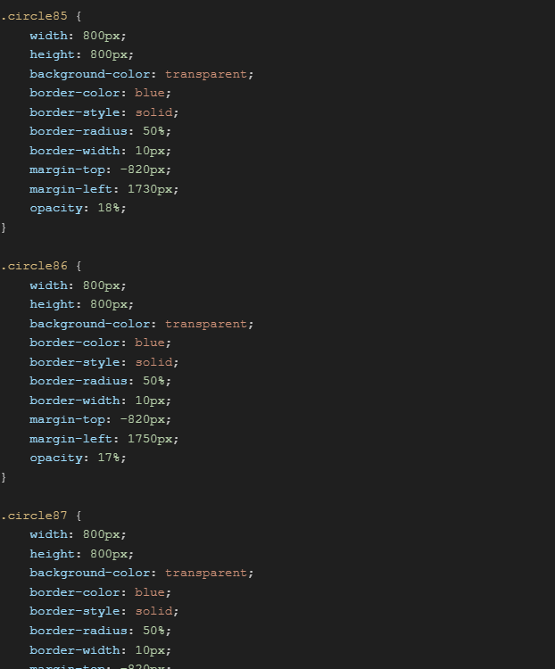 This poster was created during my web design II class. The objective was to create a poster using only html & css code. I used margins to place each circle and gradually changed the color of each to get a gradient effect, ending up with over 2,000 lines of code.